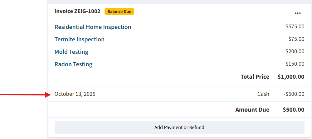 After saving your changes, the Edit you made to your Recorded Payment will immediately be reflected on the job invoice.